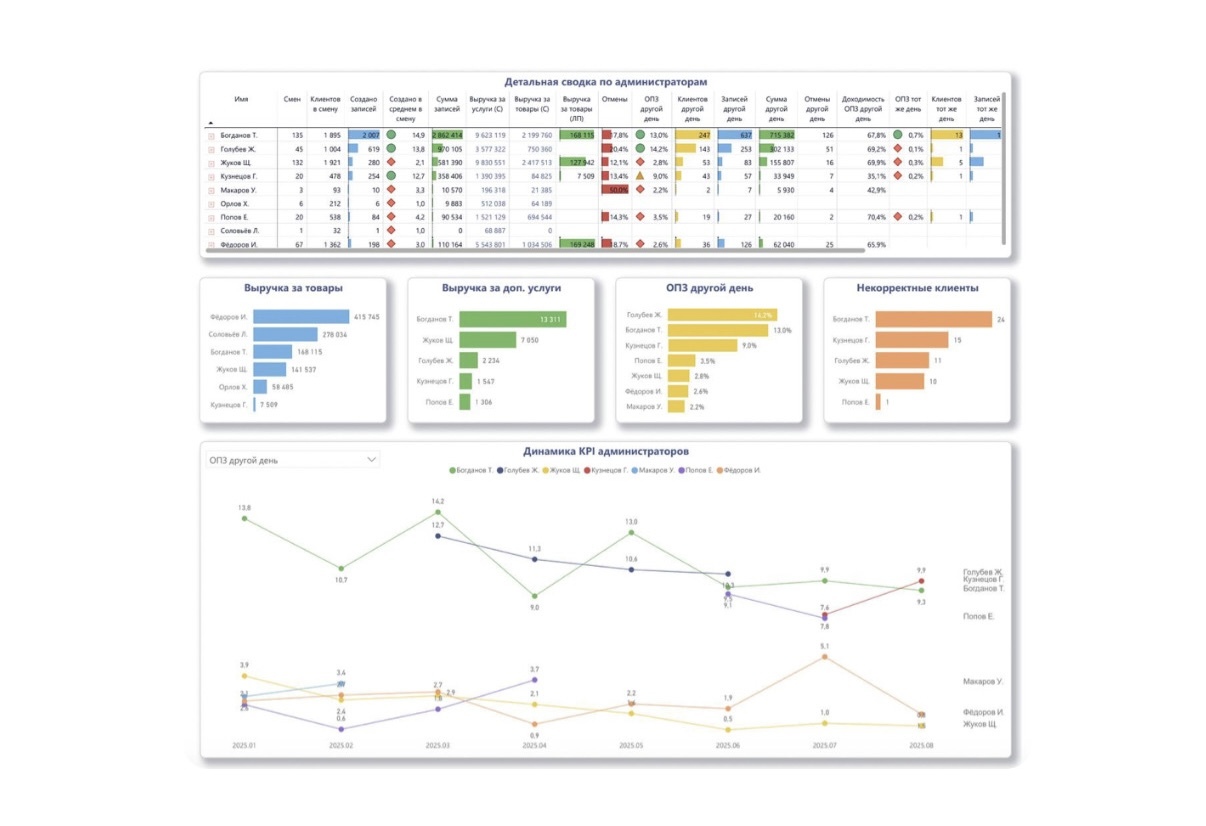 P.S.: заодно напомним, как выглядит вкладка «Администраторы», которая не измеряет только их «вдох-выдох» (если вы ещё думаете о подключении отчетов от KPI.bi)😉⬆️