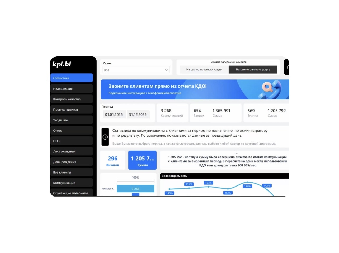 1. Отток. Появилась возможность сортировать клиентов, которые должны были прийти более 241 дня. И новый столбец «Ч» — это индивидуальная частота визитов клиента, то время через которое он возвращается.